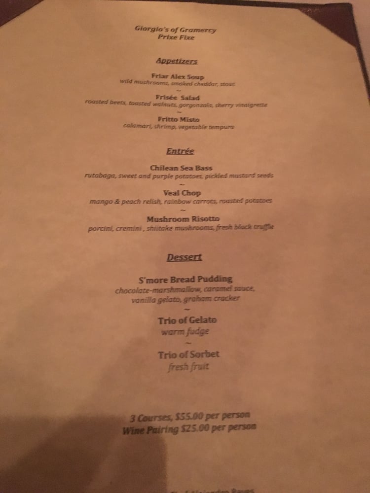 Introducing the menu at Giorgio's of Gramercy, a hidden gem in New York's vibrant Gramercy neighborhood, showcases a delightful blend of Italian and New American cuisines. The offerings include a range of hearty salads, like the Giorgio's Greek Salad and Caesar Salad, perfect for a light lunch. For more substantial fare, their Cedar Plank Atlantic Salmon and Murray's Roasted Chicken are crowd favorites, celebrated for their freshness and flavor.